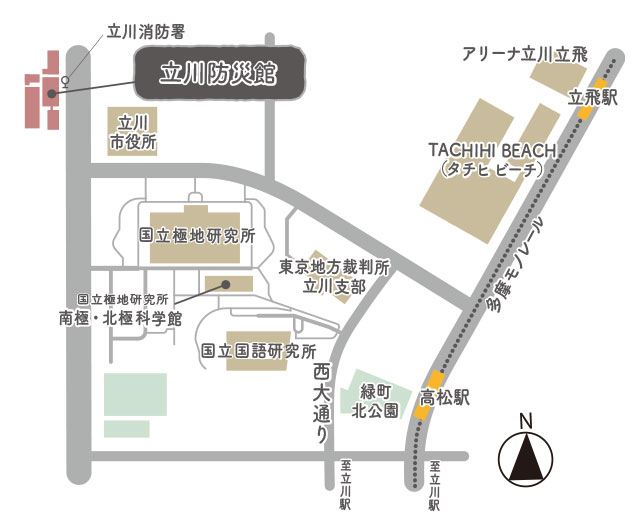 ①立川バス JR立川駅北口(1番乗り場)から「立川消防署」下車すぐ
