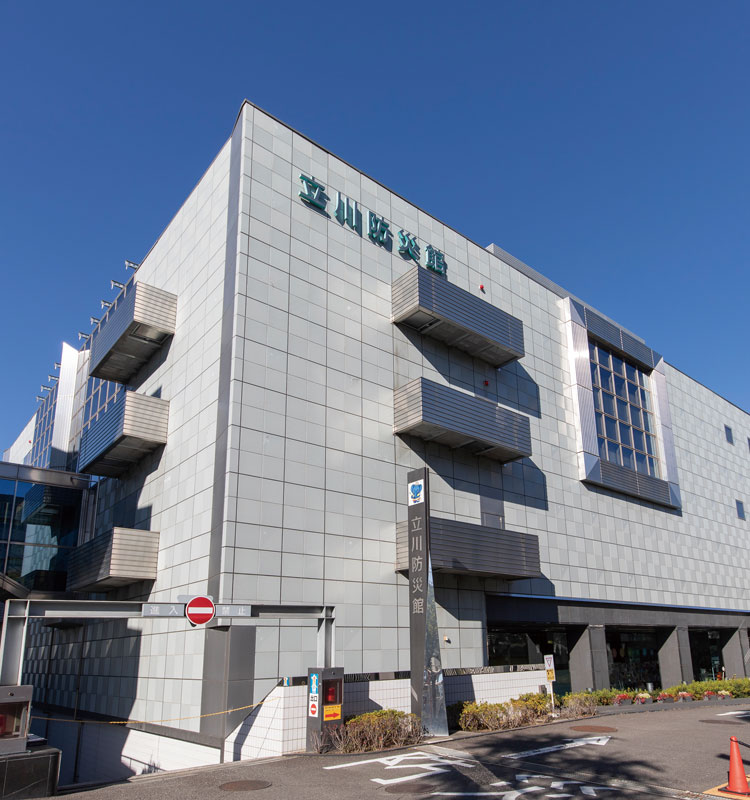 1992年に開館した「立川防災館」は、地震や煙、消火、救出救助などの知識や技術を楽しみながら学べる体験施設。模擬消火器を使ってスクリーンに映し出された火を消す初期消火の体験やこども防災体験広場など親子で楽しみながら防災について知識を深めることができます。