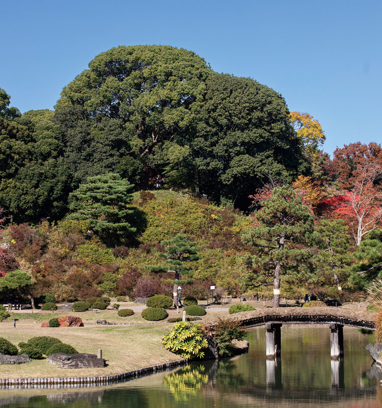 六義園は、五代将軍・徳川綱吉の信任が厚かった川越藩主・柳澤吉保が元禄15年(1702)に築園した、和歌の趣味を基調とした「回遊式築山泉水」の大名庭園です。大泉水を中心とした海辺と、それを囲む山辺に見立て、和歌に詠まれた八十八の景観を再現しています。明治になると三菱の創業者・岩崎彌太郎の別邸となり、荒廃していた庭園を再生させました。その後、昭和13年(1938)に東京市(都)に寄附されました。大泉水のまわりに滝見茶屋やつつじ茶屋などの茶屋をはじめ、馬場、築山、芝生地などが巧みに配置され、池を巡る園路は移り変わる季節の変化を楽しむことができます。藤代峠の頂上から眺める優美な庭園は素晴らしく、六義園は昭和28年(1953)に国の特別名勝に指定されました。
