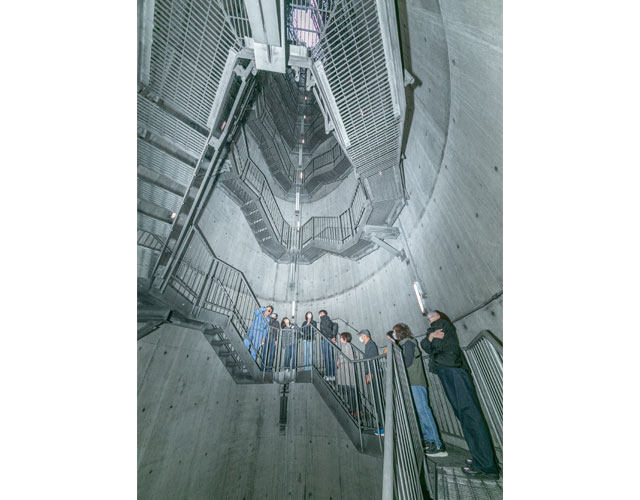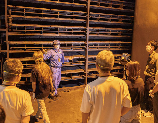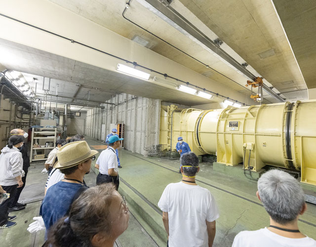 地下2階から非常時に使用する避難通路を通り、地上にある非常口を見学