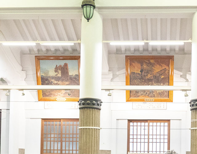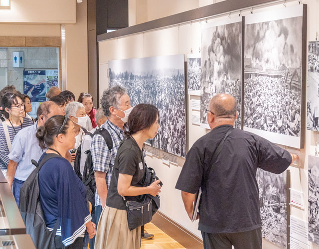 関東大震災の状況を描いた絵画や戦時中の写真を展示しています。