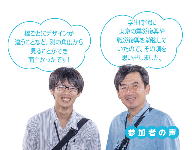 船内では東京都建設局道路管理部職員から隅田川に架かる橋の特徴や歴史の説明を受けました。