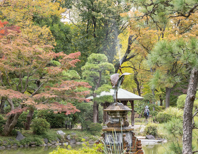 雲形池にある鶴の噴水