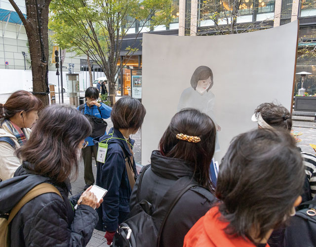 歩道に展示されたパブリックアートも見どころとなっています。