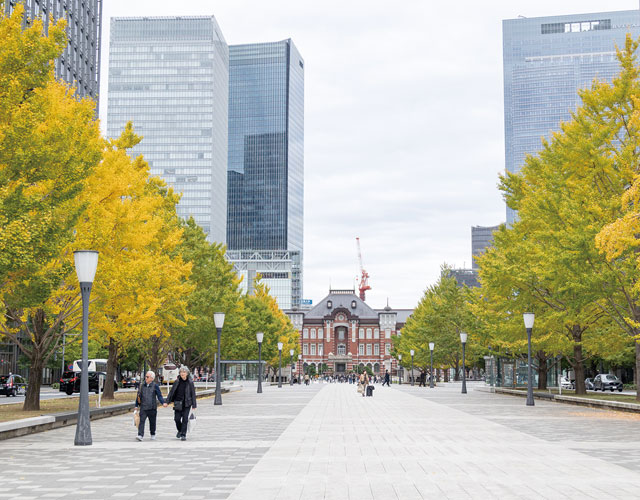東京駅から皇居に向かう行幸通りのイチョウ並木