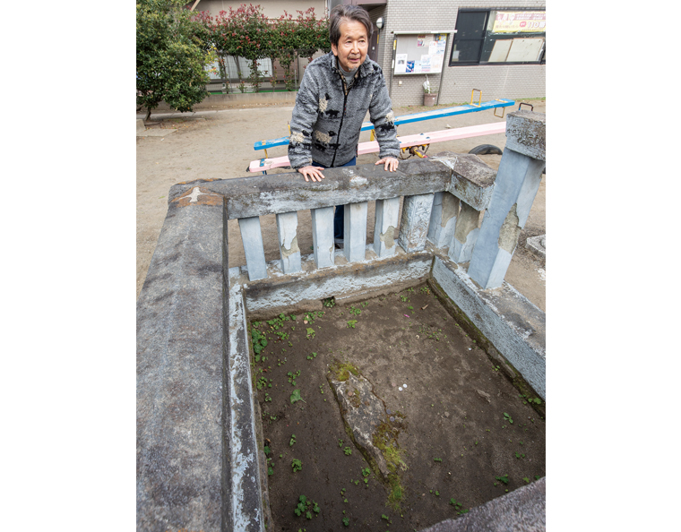 奥戸街道に戻って先へ進むと、やがて中川に架かる本奥戸橋に差しかかる。橋を渡らずに左手の中川沿いを進んでいくのが古代東海道。〝帝釈天道〟と刻んだ道標の立つ横道の奥、子ども向けの遊具が見える、何の変哲もない小公園の一角に小さな鳥居を築いて〝立石様〟という貴重な神様が祀られている。
