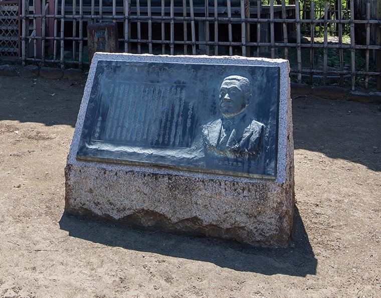 四聖堂前の石碑には井上円了博士の経歴や公園が造られた経緯が書かれています。