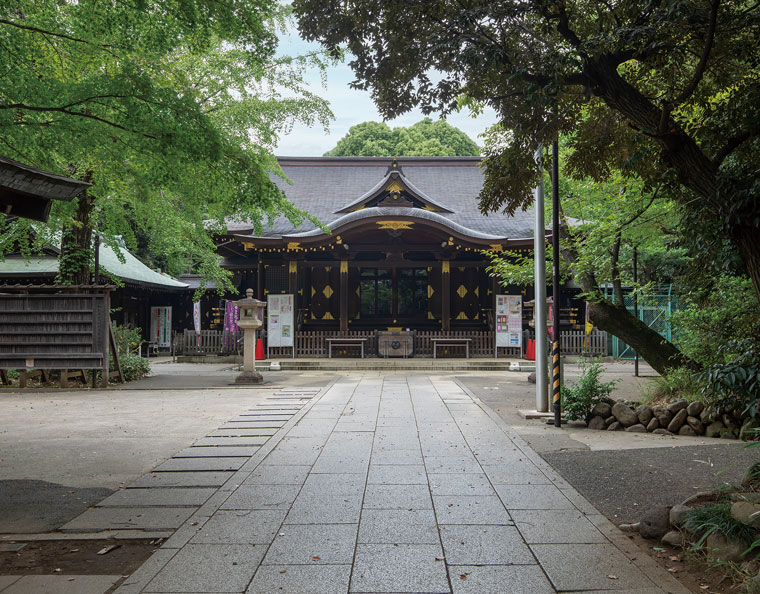 古くは氷川大明神といって旧下渋谷村、下豊澤村の総鎮守として親しまれていました。約4,000坪の広大な敷地を持つ氷川神社は渋谷区の中でも最も歴史のある古社。境内は都会とは思えない静寂に包まれています。素盞嗚尊(すさのおのみこと)と妻の稲田姫命を祀っていることから、縁結びの御利益があるといわれています。毎月15日に「縁結び祈願祭」が行われています。現在の社殿は昭和13年(1938)に総檜造で造営されました。昭和20年(1945)の空襲にも罹災せず、都内有数の木造神社建築です。
