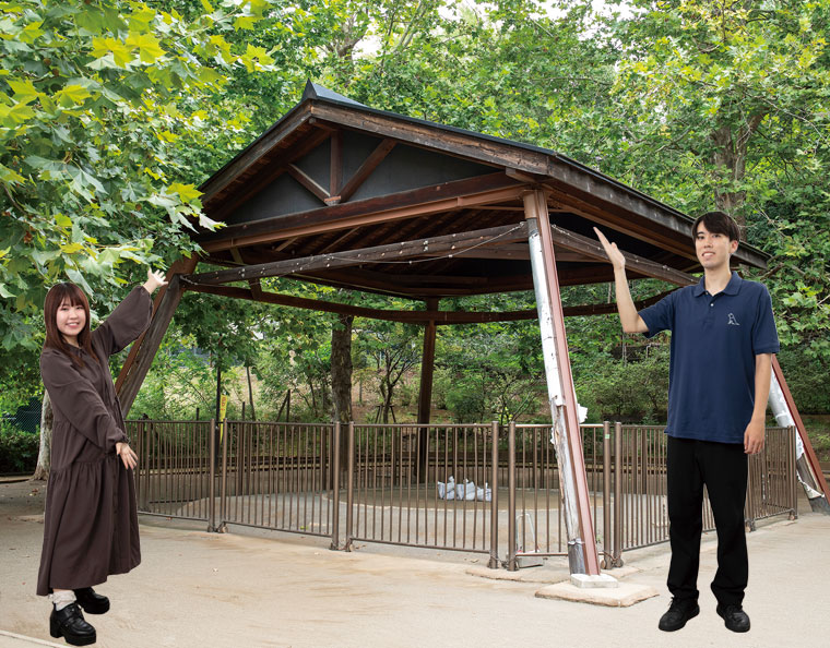 公園内にどーんと設置されている本格的な相撲の土俵。普段は閉鎖されていますが、毎年8月末には相撲部屋の協力で「ちゃんこ鍋の会」という行事が開催されています。