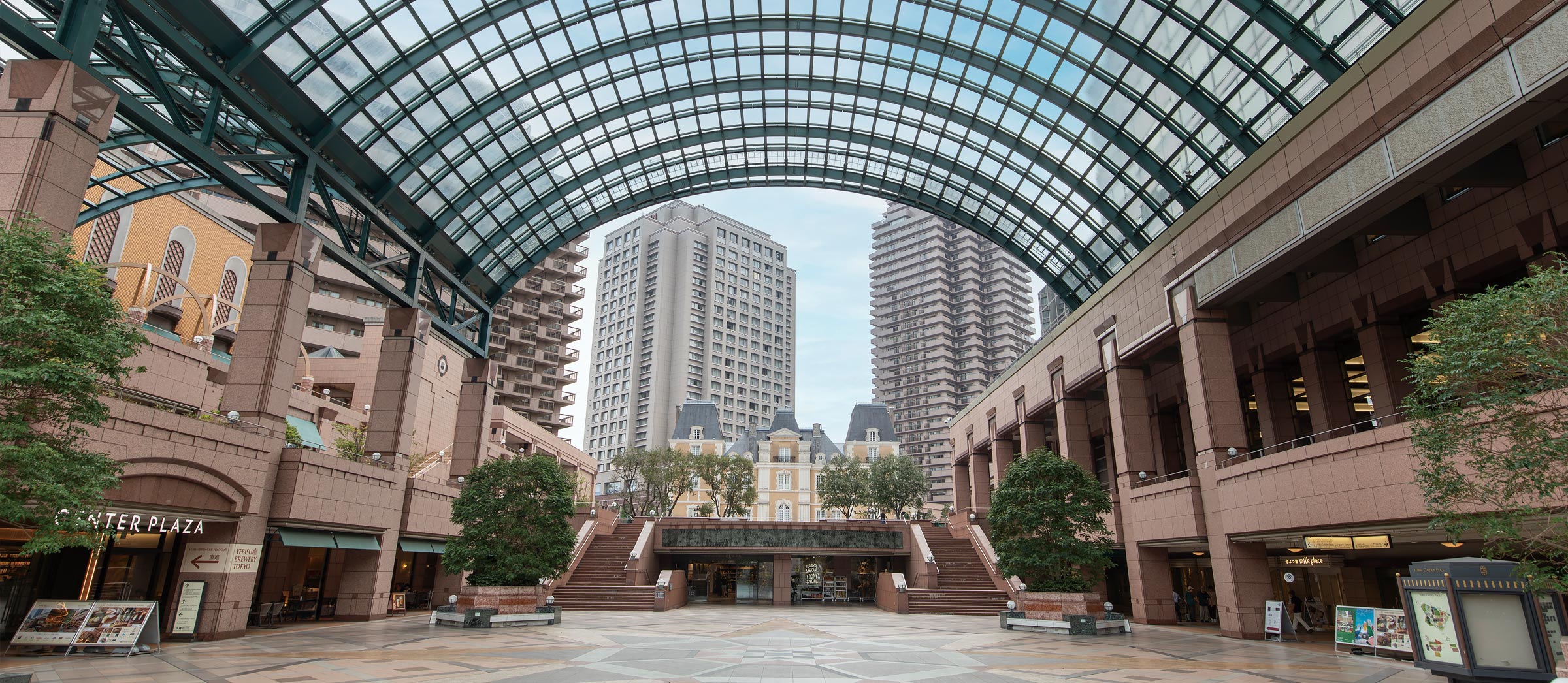 令和6年(2024)に開業30周年を迎えた恵比寿ガーデンプレイスは、平成6年(1994)に「恵比寿」の町名の由来となった「ヱビスビール」工場の跡地に建てられました。「豊かな時間・豊かな空間」をコンセプトに誕生した恵比寿ガーデンプレイスは、ゆとりある空間や美しい建物、ホテル、映画館、美術館、レストランなどを併設。ヨーロッパの街並みを思わせる広場や石畳、そして豊かな緑を配した街づくりを目指すとともに、恵比寿の歴史や旧工場の名残を今に伝える役割を担い、恵比寿のイメージを牽引し、街が変貌するきっかけとなりました。