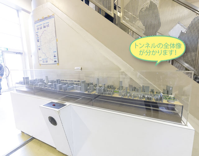 トンネル整備当時作成された模型。トンネルの全体像や整備経過を音声と動きで説明