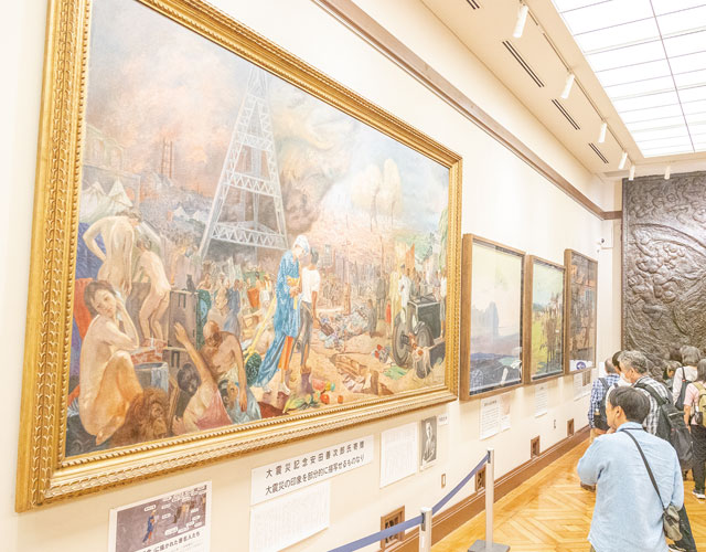 関東大震災の状況を描いた絵画や戦時中の写真を展示しています。