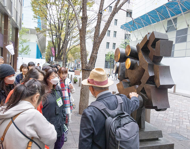 歩道に展示されたパブリックアートも見どころとなっています。