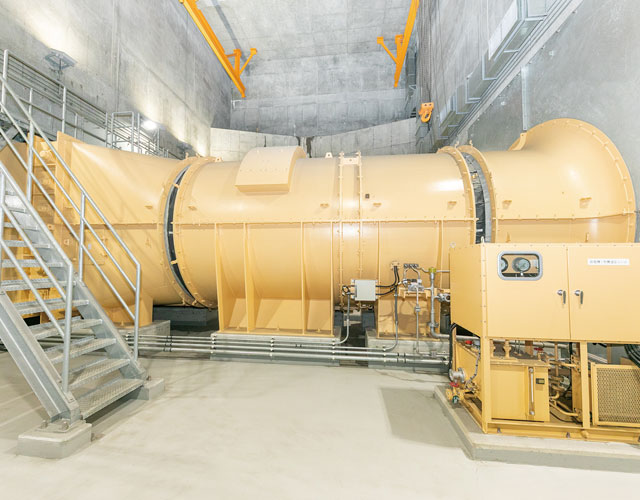 360トンの水を常時蓄える消火水槽を設置。トンネル内の火災時、消火ポンプを起動し、水を消火栓・水噴霧設備等に供給します。