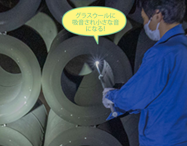 排風機で送り出された空気から発生する風切り音やモーター音等の騒音を吸収・低減しています。